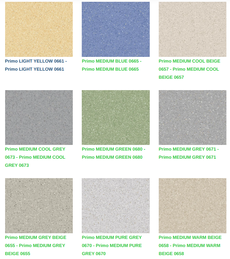 Eğitim ve sağlık tesisleri gibi yoğun trafikli uygulamalar için tasarlanan Primo Premium, hijyen ve dayanıklılığın önemli olduğu alanlar için homojen bir vinil zemin kaplama çözümüdür. Ticari markalı XR yüzey korumamız, gelişmiş koruma ve daha kolay bakım yapılmasını garanti eder. Primo Premium, geniş renk çipleriyle doğrusal olmayan bir desende Premium çok çözümlü ailesinin aksesuarları ve diğer ürünleri ile uyumlu renklerde mevcuttur.